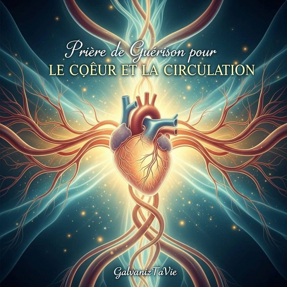 Purifie mon sang, Seigneur. Répare les micro-vaisseaux. Guéris mes cellules endothéliales. Éloigne de moi la fatigue cardiaque. Que ton Esprit souffle la paix dans mon cœur physique et dans mon cœur intérieur.