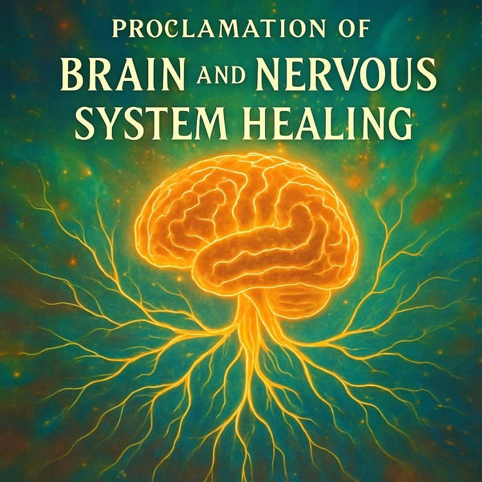 Je proclame que mes neurones sont revitalisés, mes pensées sont claires, mon intelligence est restaurée, ma santé mentale est renouvelée. Je rejette la dépression, l’anxiété, les troubles obsessionnels, les tumeurs, la sclérose en plaques, Parkinson, Alzheimer, les AVC, les maux de tête chroniques et toutes formes de troubles nerveux. Mon cerveau est sous l’onction du Saint-Esprit.